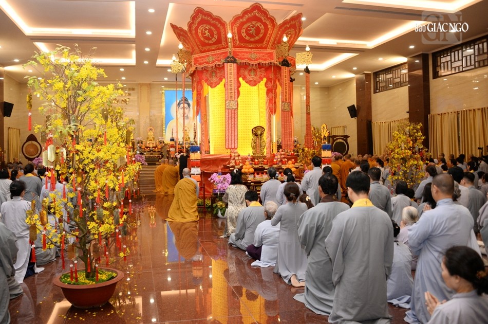 Đức Pháp chủ ban lời chúc mừng xuân mới đến toàn thể Tăng Ni, Phật tử thuộc Phật giáo TP.HCM, giữ gìn sự trang nghiêm tự thân, trí tuệ và hòa hợp, để vượt qua những chướng ngại, đi đến thành tựu các Phật sự, từng bước tiến xa trên đường đạo.