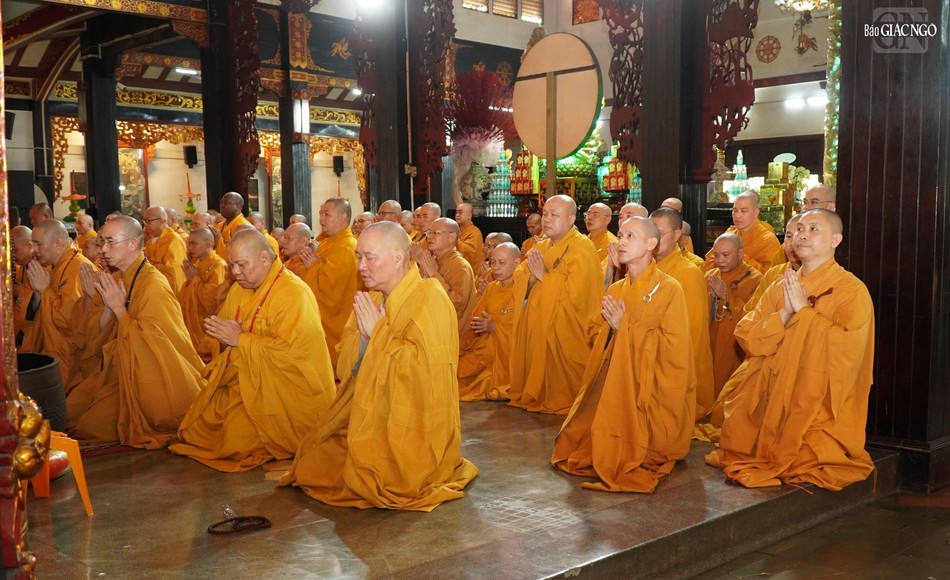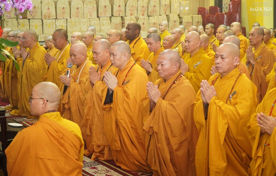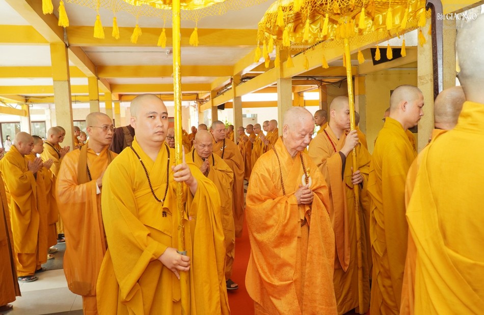 Đức Pháp chủ GHPGVN - Đại lão Hòa thượng Thích Trí Quảng; Trưởng lão Hòa thượng Thích Đức Nghiệp, Phó Pháp chủ kiêm Giám luật Hội đồng Chứng minh, Trưởng môn phái tổ đình Vĩnh Nghiêm; Trưởng lão Hòa thượng Thích Thiện Nhơn, Phó Pháp chủ, Chủ tịch Hội đồng Trị sự; chư tôn Trưởng lão Ủy viên Thường trực Hội đồng Chứng minh, quang lâm chứng minh.