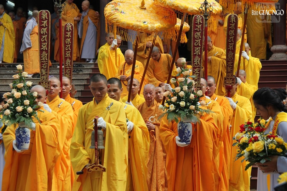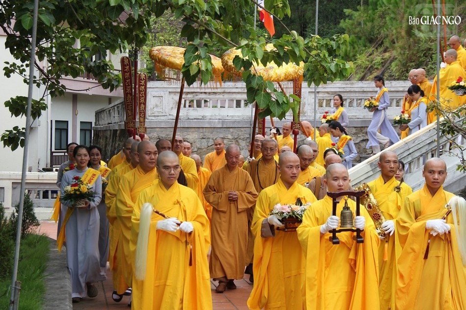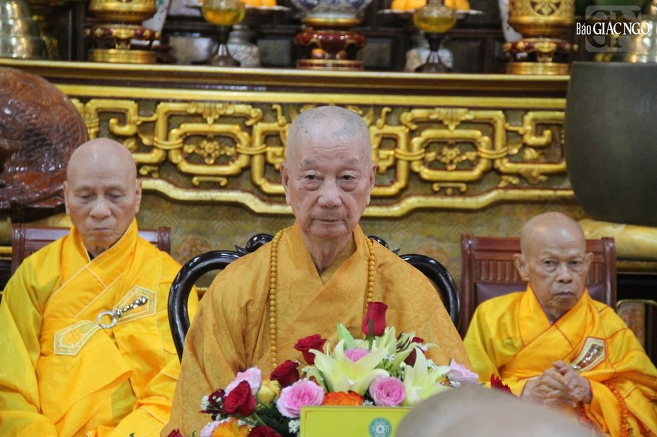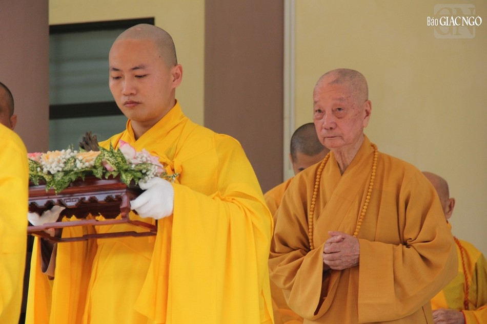 Tháp tùng Đức Pháp chủ có chư vị Ban Thư ký Văn phòng Đức Pháp chủ: Hòa thượng Thích Lệ Trang, Trưởng ban Trị sự GHPGVN TP.HCM; Thượng tọa Thích Giác Dũng, Phó Viện trưởng Học viện Phật giáo VN tại TP.HCM; Thượng tọa Thích Tâm Hải, Tổng Biên tập Báo Giác Ngộ.