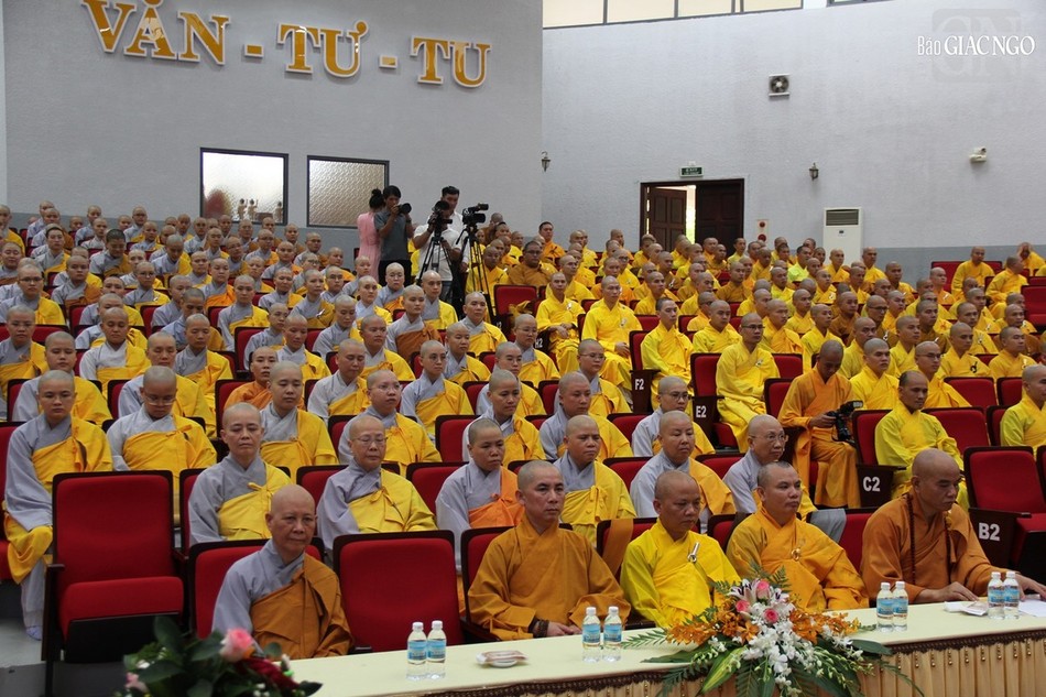 Dịp này, Đại lão Hòa thượng Pháp chủ nói về ý nghĩa và tầm quan trọng của phương châm “duy tuệ thị nghiệp” (lấy trí tuệ làm sự nghiệp) và trách nhiệm của người Phật tử, cả xuất gia và tại gia trong việc học và thực hành, truyền bá Phật pháp.