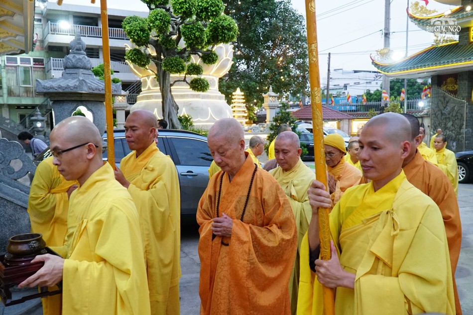 Tháp tùng Đức Pháp chủ có chư vị Trưởng lão Hội đồng Chứng minh: Trưởng lão Hòa thượng Viên Minh, Phó Pháp chủ; Trưởng lão Hòa thượng Thích Như Niệm, Phó Thư ký; chư vị Ủy viên Thường trực: Trưởng lão Hòa thượng Giác Tường, Trưởng lão Hòa thượng Thích Như Tín, Hòa thượng Thích Minh Thông; cùng vị Trưởng lão Thành viên Hội đồng Chứng minh GHPGVN.