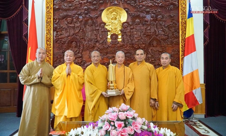 Sau khi Hòa thượng Thích Quảng Hà tác bạch, chư Tăng Ni Ban Giám hiệu và Tăng Ni đang theo học tại trường Trung cấp Phật học Nam Định cùng Phật tử đã đảnh lễ vấn an Đức Quyền Pháp chủ GHPGVN.