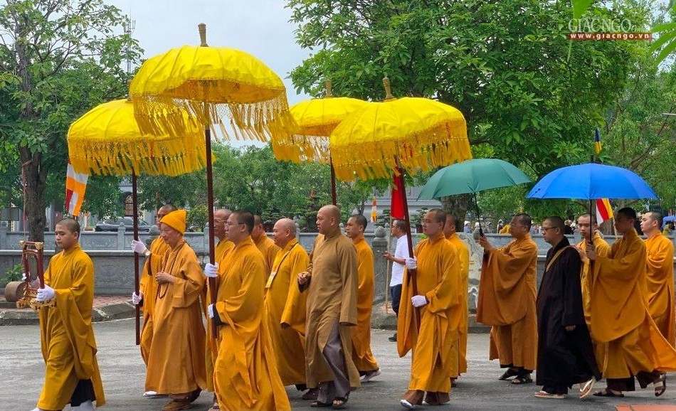 Cung nghinh Đức Quyền Pháp chủ có Hòa thượng Thích Quảng Hà, Phó Chủ tịch Hội đồng Trị sự, Trưởng ban Trị sự GHPGVN tỉnh Nam Định và chư Tăng Ni, cùng đông đảo Phật tử.