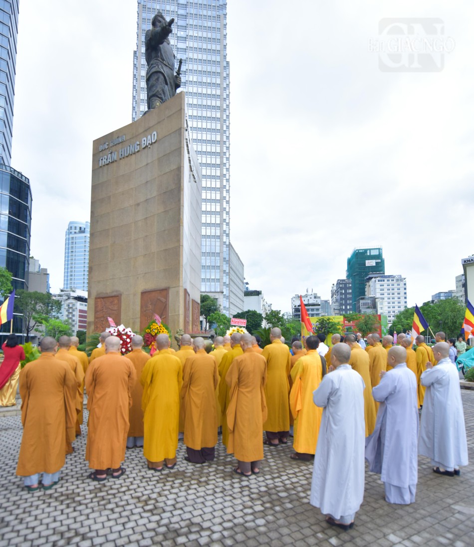 Phái đoàn Ban Trị sự Phật giáo TP.HCM cũng đã đến dâng hương trước tượng đài Đức Thánh Trần Hưng Đạo tại công trường Mê Linh (Q.1). Quốc công Tiết chế Hưng Đạo đại vương Trần Quốc Tuấn là vị tướng lĩnh tài ba đã lãnh đạo quân và dân nhà Trần đánh tan cuộc xâm lược của quân Nguyên - Mông vào năm 1285 và 1288. Triều đại Lý - Trần ghi dấu trong lịch sử Việt Nam là giai đoạn đặc biệt hưng thịnh về văn hóa, với ảnh hưởng to lớn của tinh thần Phật giáo.