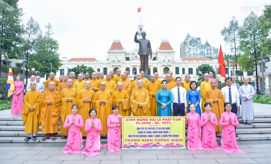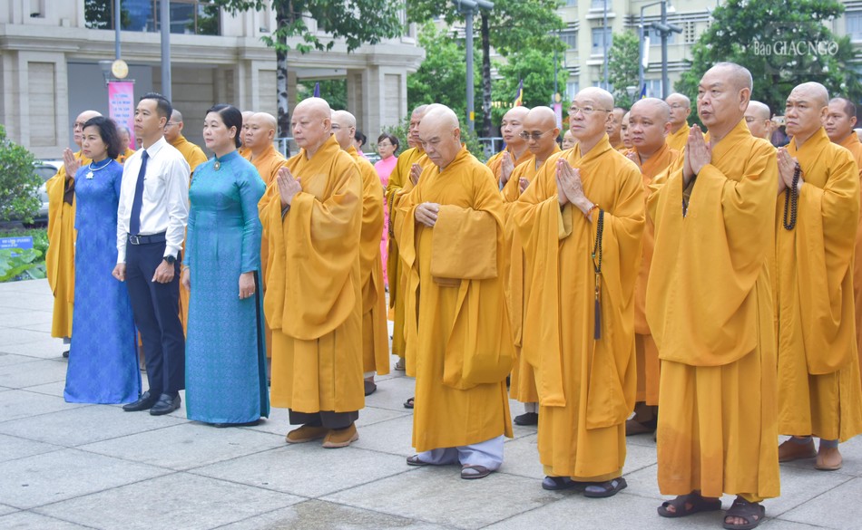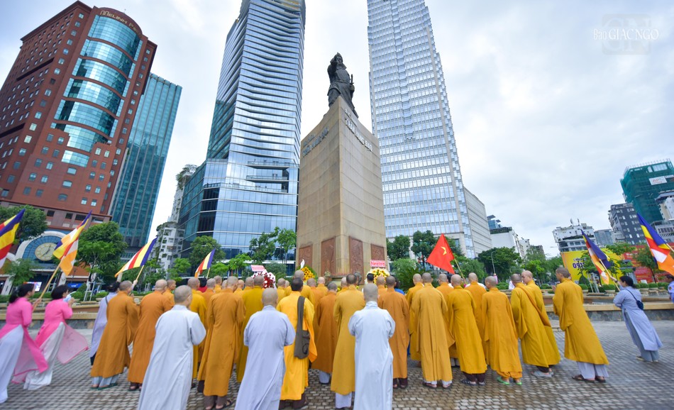 Trước tượng đài Chủ tịch Hồ Chí Minh tọa lạc tại quảng trường Nguyễn Huệ (Q.1), chư tôn đức Ban Trị sự Phật giáo TP.HCM đã dâng hoa tưởng niệm vị lãnh tụ thiên tài, biểu tượng của khối đại đoàn kết toàn dân tộc Việt Nam. Sinh thời, Chủ tịch Hồ Chí Minh luôn dành sự quan tâm đặc biệt, thường xuyên thăm hỏi chức sắc, đồng bào các tôn giáo.