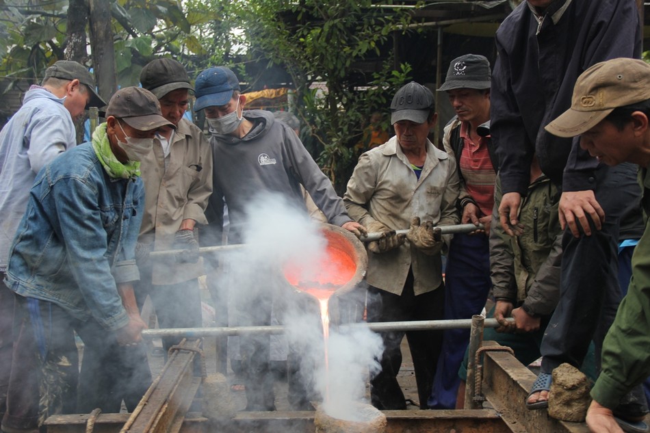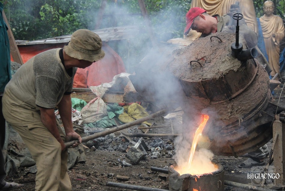 Trong không khí trang nghiêm, Trưởng lão Hòa thượng Phó Pháp chủ cùng chư tôn giáo phẩm đã niêm hương cầu nguyện. Hòa thượng Thích Giác Đạo, Ủy viên Hội đồng Trị sự, Phó Trưởng ban Thường trực Ban Nghi lễ T.Ư dẫn lễ cử hành nghi thức rót đồng kiến tạo đại hồng chung. Toàn thể đại chúng nhất tâm đồng niệm hồng danh chư Phật, chư Bồ-tát gia bị trong khi hơn 60 nghệ nhân, nhân viên kỹ thuật rót đồng vào khuôn theo quy trình bảo đảm sự thành tựu viên mãn.