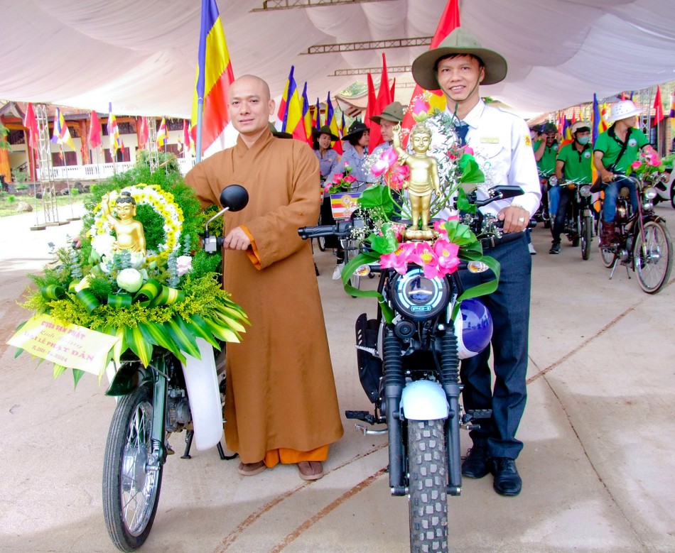 Tham gia diễu hành có huynh trưởng và đoàn sinh Gia đình Phật tử, Liên đoàn xe đạp Gia Lai, Câu lạc bộ Honda67 Pleiku.