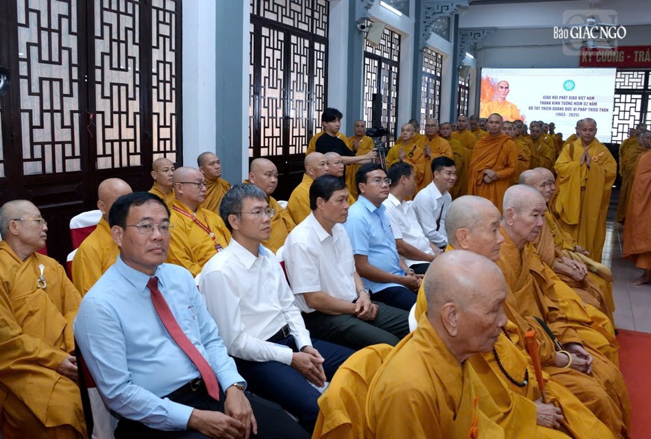 Tiếp đó, với sự dẫn lễ của Trưởng lão Hòa thượng Thích Huệ Minh, Thành viên Hội đồng Chứng minh GHPGVN, chư tôn giáo phẩm Hội đồng Chứng minh, Hội đồng Trị sự, Ban Trị sự TP.HCM và các tỉnh thành thành, đại diện các cơ quan đã thành kính dâng, chí thành dâng hương tưởng niệm Giác linh Bồ-tát Thích Quảng Đức và tri ân công đức to lớn của Bồ-tát đã đốt thân mình làm ngọn đèn soi sáng nẻo vô minh, cho đạo pháp trường tồn; cùng tưởng niệm chư vị Thánh tử vì đạo.