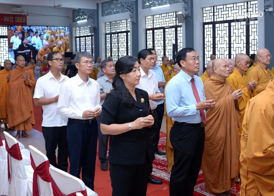 Đại diện các cơ quan T.Ư, TP.HCM có ông Phạm Khắc Nguyên, Phó Trưởng Phòng An ninh nội địa - Bộ Công an; bà Nguyễn Thị Bạch Mai, Thành ủy viên, Phó Trưởng ban Thường trực Ban Tuyên giáo và Dân vận Thành ủy TP.HCM; ông Nguyễn Duy Tân, Giám đốc Sở Dân tộc - Tôn giáo TP.HCM; Thạch Nghi Xuân, Ủy viên Thường trực, Trưởng ban Dân tộc - Tôn giáo Ủy ban MTTQVN TP.HCM, cùng đại diện các cơ quan trung ương, TP.HCM.