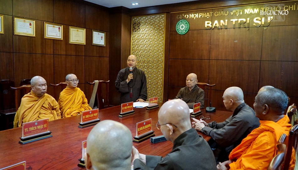 Hòa thượng Thích Lệ Trang, Phó Chủ tịch Hội đồng Trị sự, Trưởng ban Trị sự GHPGVN TP.HCM chủ trì buổi họp.