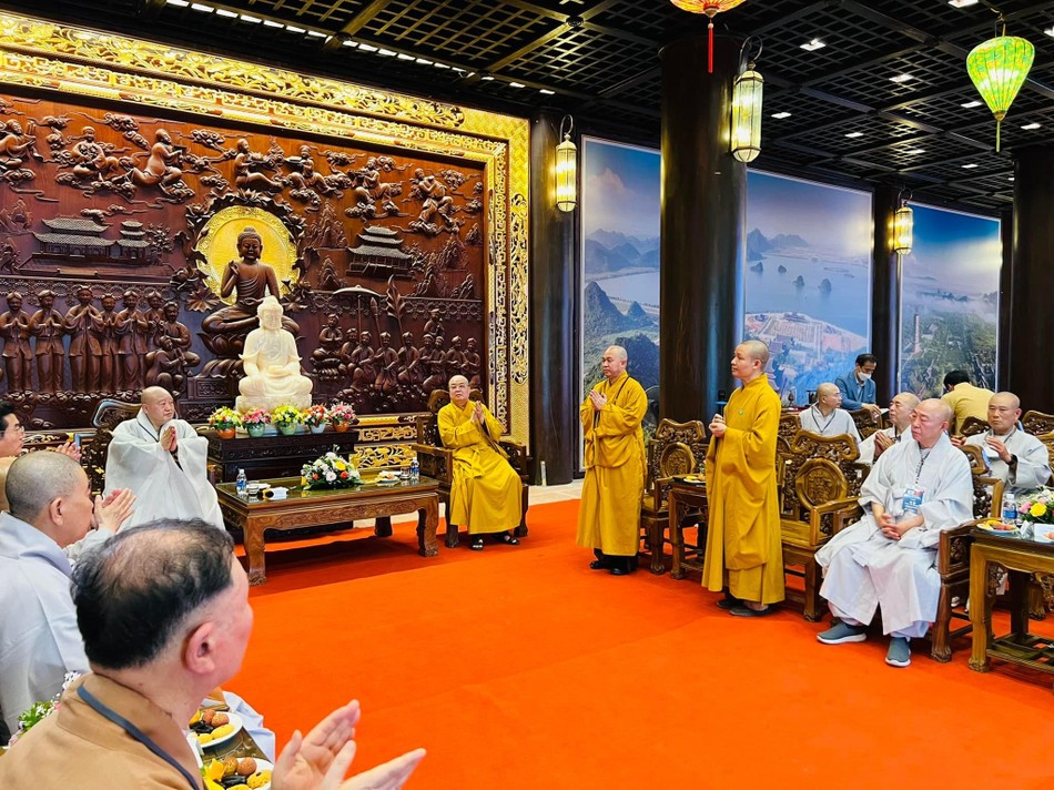 Đón tiếp đoàn có Hòa thượng Thích Thanh Nhiễu, Phó Chủ tịch Thường trực Hội đồng Trị sự GHPGVN; Thượng tọa Thích Đức Thiện, Phó Chủ tịch kiêm Tổng Thư ký Hội đồng Trị sự GHPGVN; Thượng tọa Thích Minh Quang, Phó Chánh Văn phòng I Trung ương GHPGVN.