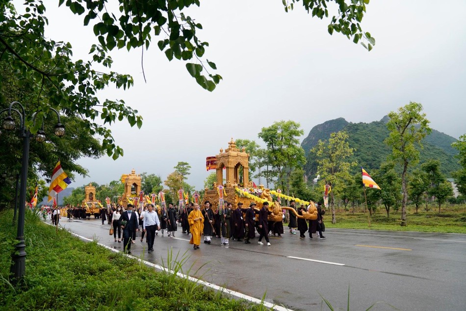 Trước đó, chiều cùng ngày, chùa Tam Chúc đã tổ chức diễu hành xe hoa và cung rước Xá-lợi Phật kính mừng Phật đản.
