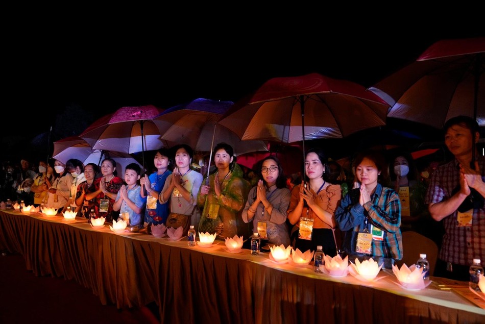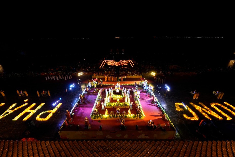 Tiếp đó, trong không gian thanh tịnh nơi chùa Tam Chúc, mọi sự vật, sự việc đang hiện hữu đã cùng hoà nhịp lại, chư tôn đức Tăng Ni và các Phật tử đã cùng nhau thả hàng vạn ngọn hoa đăng rực rỡ đang được thắp sáng xuống lòng hồ Tam Chúc.