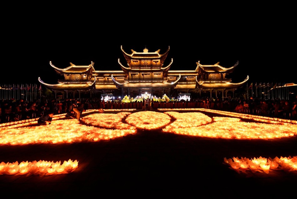 GNO - Tối 15-5 (15-4-Nhâm Dần), đông đảo Tăng Ni, Phật tử và người yêu mến đạo Phật đã trang nghiêm tham dự Đại lễ Phật Đản Phật lịch 2566 tại chùa Tam Chúc (huyện Kim Bảng, tỉnh Hà Nam).