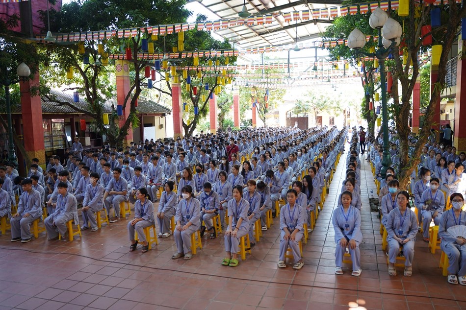 GNO - Nhằm tạo ra một sân chơi lành mạnh, bổ ích cho các bạn thanh thiếu niên trong dịp nghỉ hè, sáng 4-7, chùa Bằng - Linh Tiên tự (P.Hoàng Liệt, Q.Hoàng Mai, TP.Hà Nội) đã khai mạc khóa tu tuổi trẻ lần thứ XI năm 2023, chủ đề “Con về bên Phật”, với sự tham gia của 550 khóa sinh.