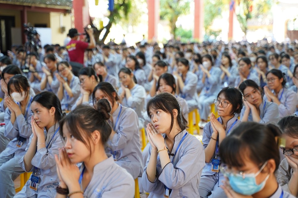 Sau lễ khai mạc, Thượng tọa Thích Minh Quang đã có buổi chia sẻ Phật pháp với 550 bạn khóa sinh với chủ đề “Sống biết ơn”.