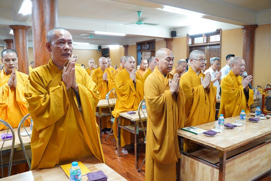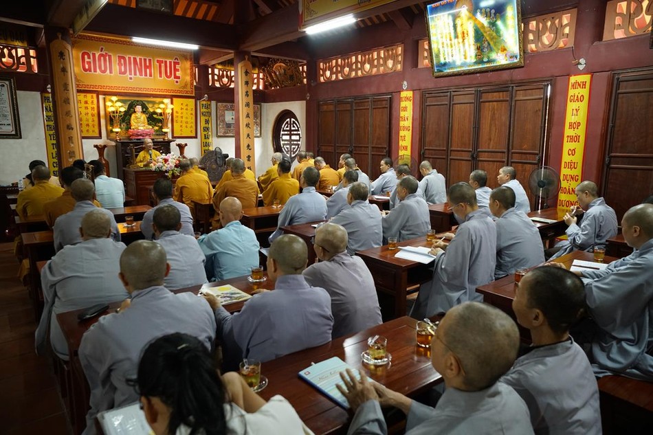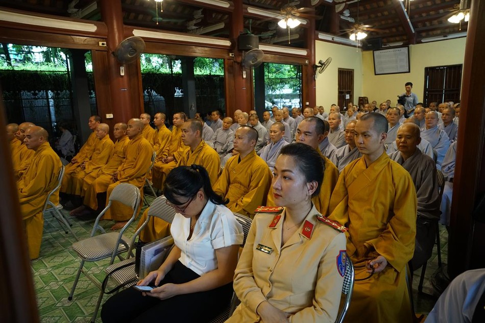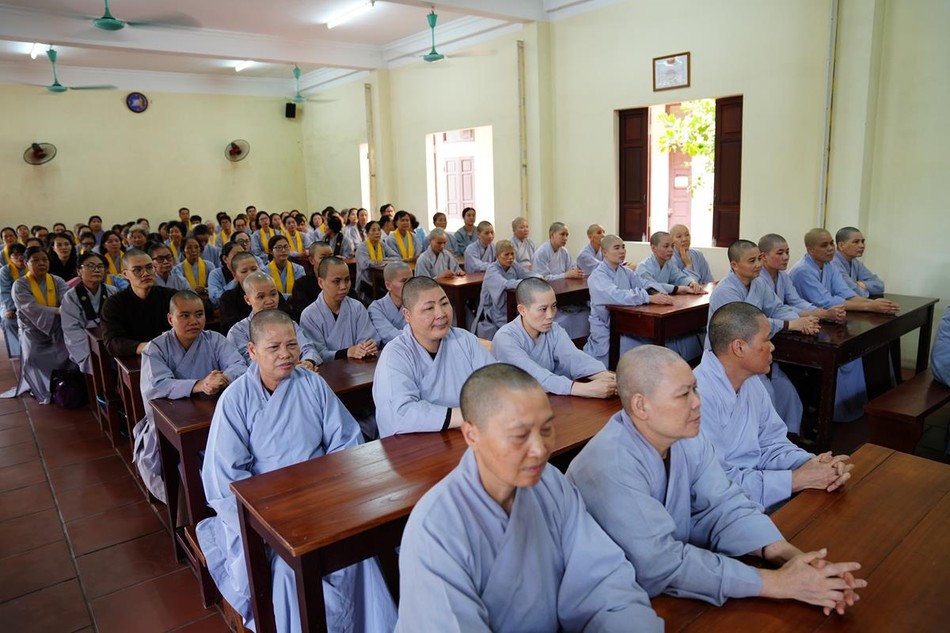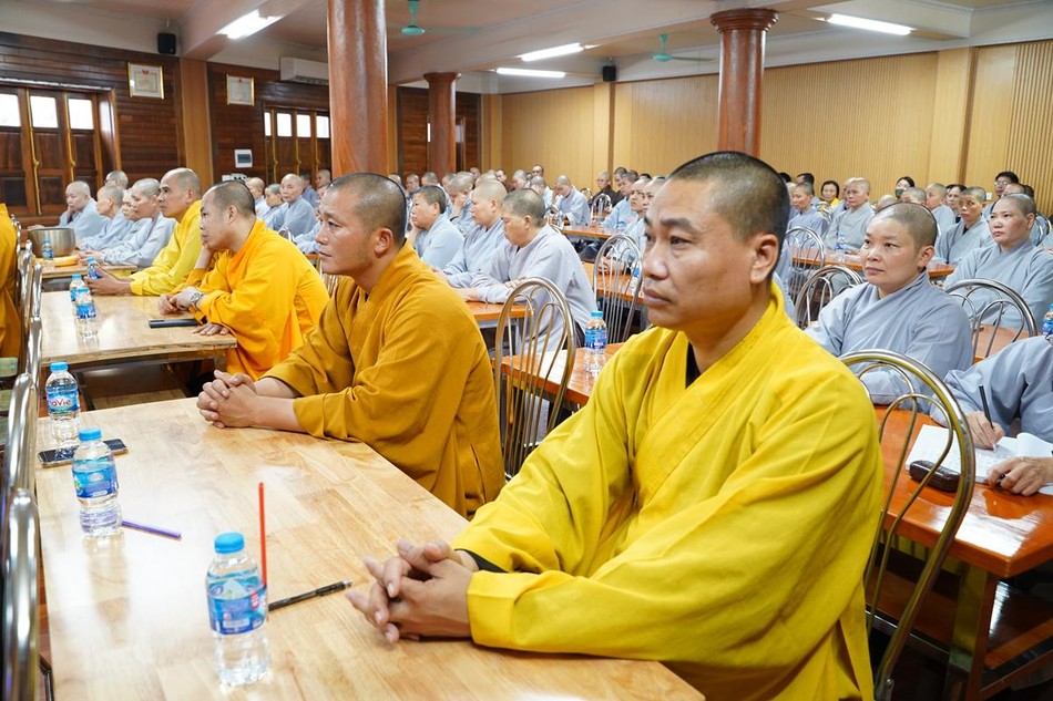 Ngoài ra, chư hành giả tại các hạ trường còn được lắng nghe bà Phạm Bảo Khánh, Phó ban Tôn giáo Thành phố và ông Dương Ngọc Kiên, Trưởng phòng Phật giáo - Ban Tôn giáo Thành phố phổ biến những quy định của pháp luật về việc quản lý tôn giáo, những vấn đề thời sự liên quan đến tôn giáo; hướng dẫn chư Tăng Ni hiểu đúng tinh thần nội dung trong Thông tư 04/2023/TT- BTC ngày 19-1-2023 của Bộ Tài chính; những nội dung mới trong Nghị định 95/2023/NĐ của Chính phủ ngày 29-12-2023 về việc cấp phép xây dựng các cơ sở tự viện, tổ chức tôn giáo trực thuộc; cấp đăng ký pháp nhân phi thương mại, cấp giấy chứng nhận quyền sử dụng đất, kê khai diện tích sử dụng đất của các cơ sở tự viện...