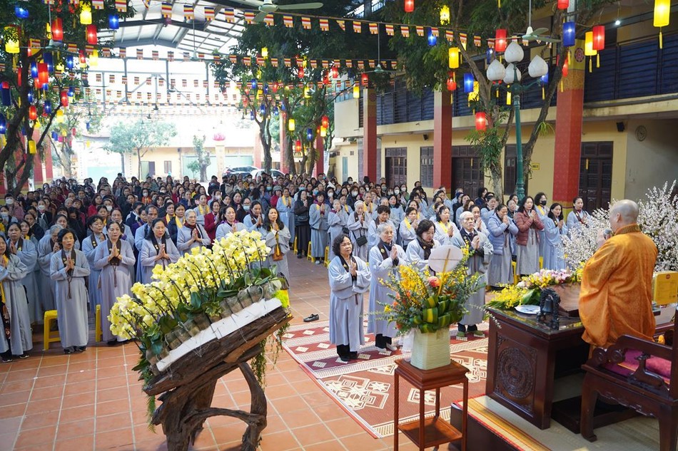 Theo đó, Hòa thượng trụ trì đã gặp mặt và có thời pháp thoại đầu năm dành cho Đạo tràng Pháp Hoa Hà Nội và người dân, Phật tử thập phương.