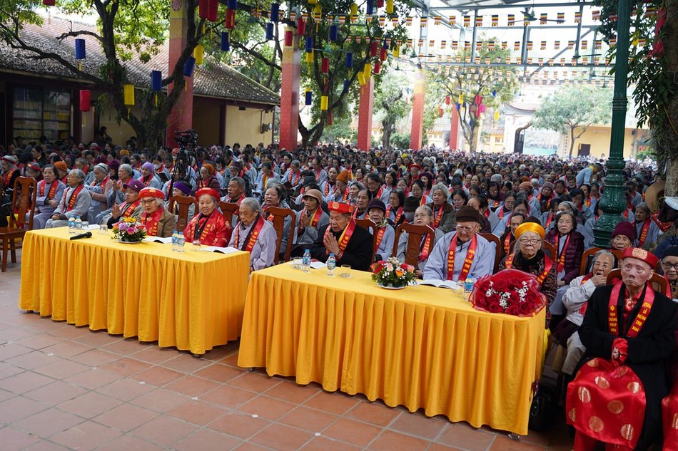 GNO - Theo truyền thống hàng năm, ngày 3-3, chùa Bằng (Linh Tiên tự) tổ chức mừng thọ cho Phật tử tuổi 60 - 65 - 70 - 75 - 80 - 85 trở lên của đạo tràng Pháp Hoa miền Bắc.