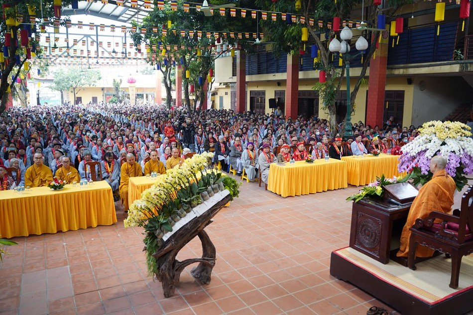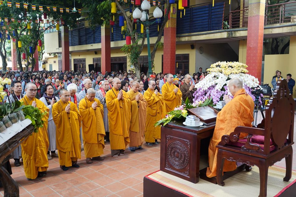 Quang lâm chứng minh và cầu nguyện chúc phúc có Hòa thượng Thích Bảo Nghiêm, Phó Chủ tịch Hội đồng Trị sự kiêm Trưởng ban Hoằng pháp T.Ư, trụ trì chùa Bằng, cùng chư Tăng và Phật tử đạo tràng Pháp Hoa miền Bắc.