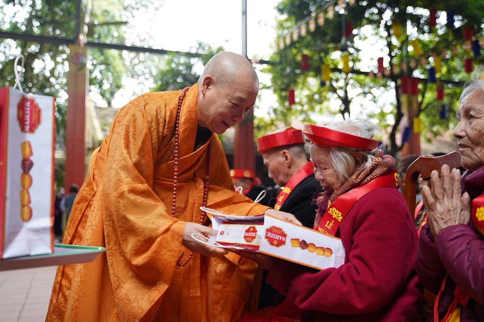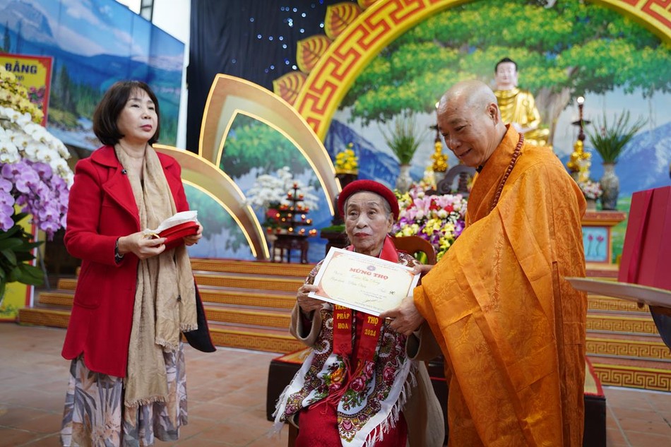 Dịp này, Hòa thượng cũng đã chúc thọ tới thân mẫu năm nay bước sang tuổi 90, đồng thời có món quà tri ân tới ông Nguyễn Đình Tuất, nguyên Bí Thư chi bộ khu dân cư Bằng A; tặng 14 phần quà đặc biệt đến các cụ cao niên từ 95 tuổi trở lên. Đại diện Đạo tràng Pháp Hoa miền Bắc cũng dâng trà, dâng trầu và có món quà gửi tặng tới các cụ cao niên thay cho lời chúc thọ an lành nhất.