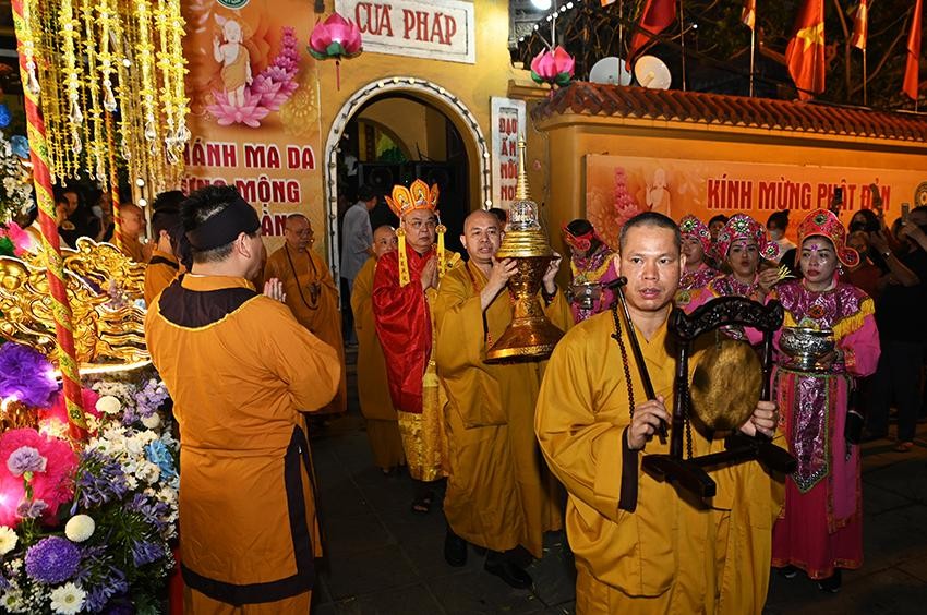 GNO - Tối ngày 14-5, GHPGVN và chùa Quán Sứ đã long trọng tổ chức lễ rước xá-lợi Phật kính mừng ngày Đức Phật đản sinh Phật lịch 2566, cầu quốc thái dân an, thế giới hòa bình, chúng sinh an lạc.