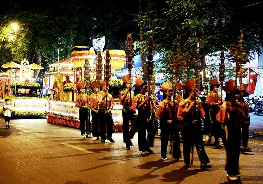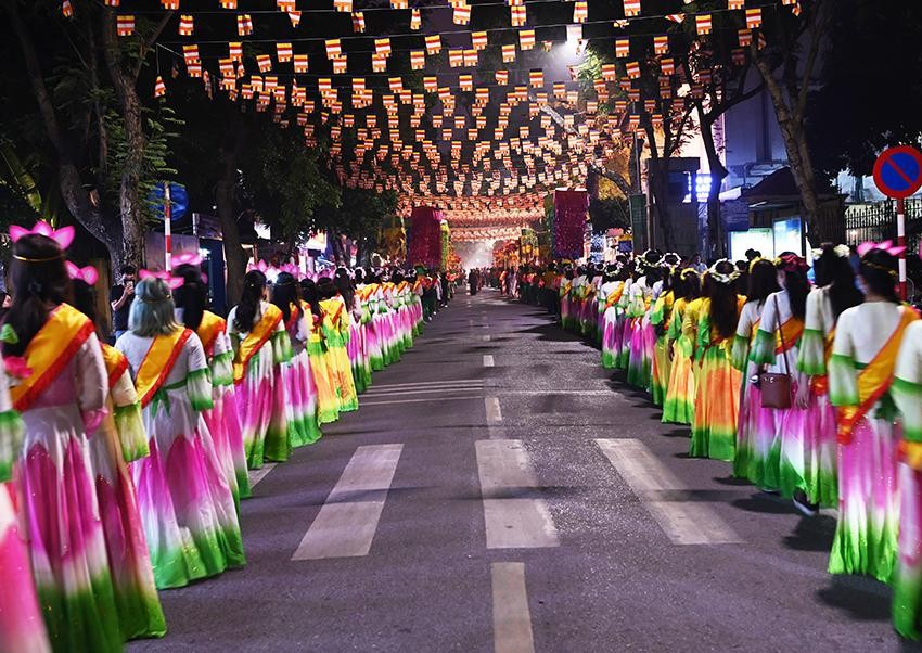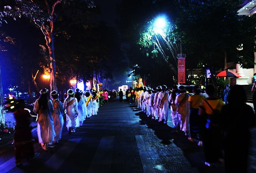 Trong niềm hân hoan mừng Khánh đản của Đức Thế Tôn, những người con Phật đã thành kính cung rước xá-lợi Phật theo các tuyến phố Quán Sứ - Lý Thường Kiệt - Bà Triệu - Nguyễn Du - Trần Bình Trọng - Trần Hưng Đạo qua Cung Văn hóa Hữu nghị Việt Xô về chùa Quán Sứ.
