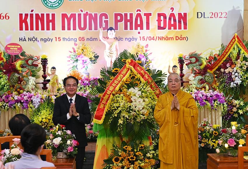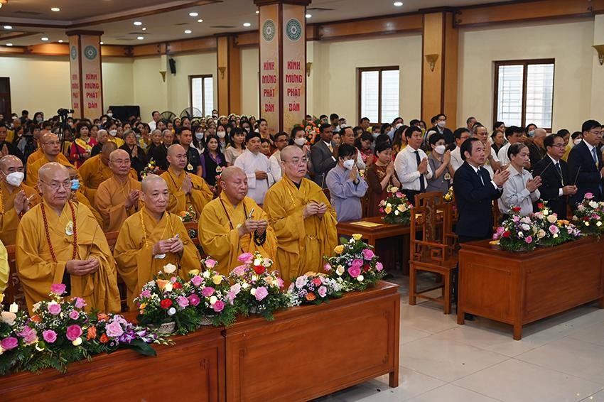 Tại buổi lễ, Hòa thượng Thích Thanh Nhiễu cung tuyên Thông điệp của Đức Quyền Pháp chủ. Hòa thượng Thích Gia Quang tuyên đọc Diễn văn của Chủ tịch Hội đồng Trị sự GHPGVN. Ông Ngô Sách Thực đọc thư chúc mừng Phật đản PL.2566 - DL.2022 của ông Đỗ Văn Chiến, Bí thư Trung ương Đảng, Chủ tịch Ủy ban Trung ương MTTQVN.