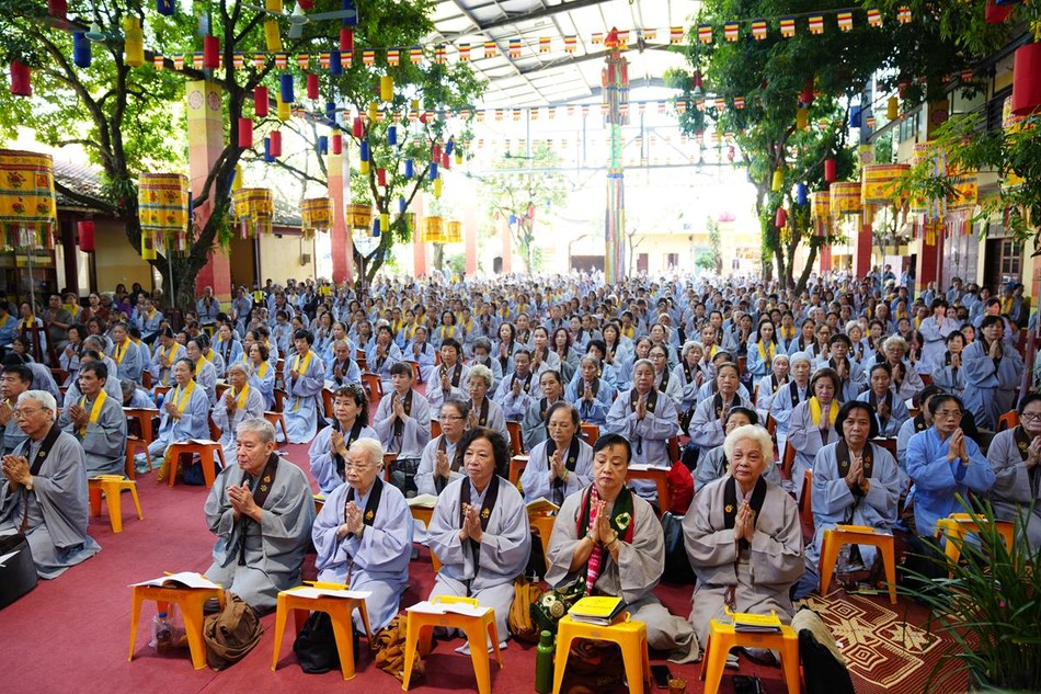 Kết thúc thời pháp thoại, dưới sự chủ lễ của chư Tăng bản tự, đại chúng tiếp tục trì tụng kinh Dược Sư, cầu nguyện thế giới hòa bình, Phật pháp xương minh, nhân dân an lạc.