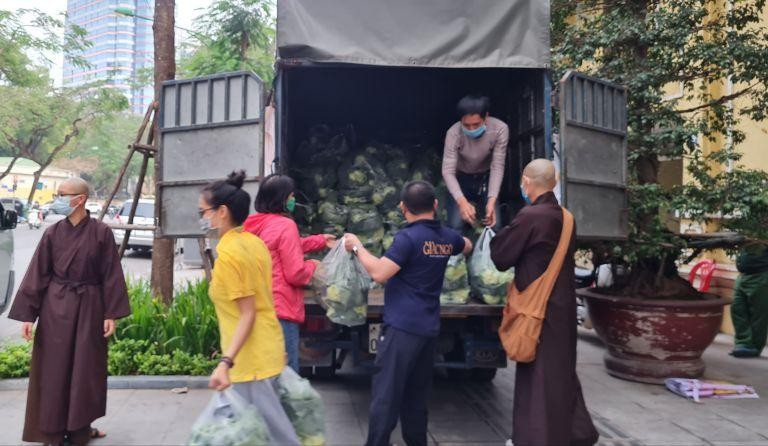 Nhiều tấn nông sản đã được chuyển đến chùa Quán Sứ - hỗ trợ tiêu thụ giúp nông dân vùng dịch |