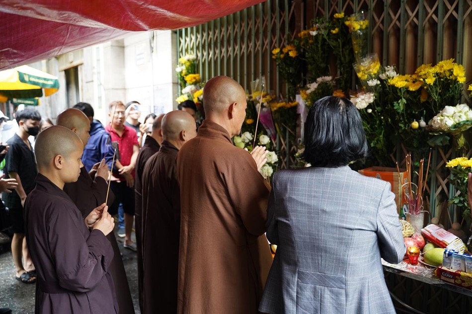 Sau đó, chư tôn đức Ban Trị sự Phật giáo Thủ đô đã đến trước chung cư mini tại ngõ 29/70 Khương Hạ - nơi xảy ra vụ hỏa hoạn để thắp nén tâm hương, tụng kinh cầu nguyện cho các nạn nhân - người tử vong được vãng sinh cõi lành; cầu nguyện người bị thương tổn được bình an, tai qua nạn khỏi.