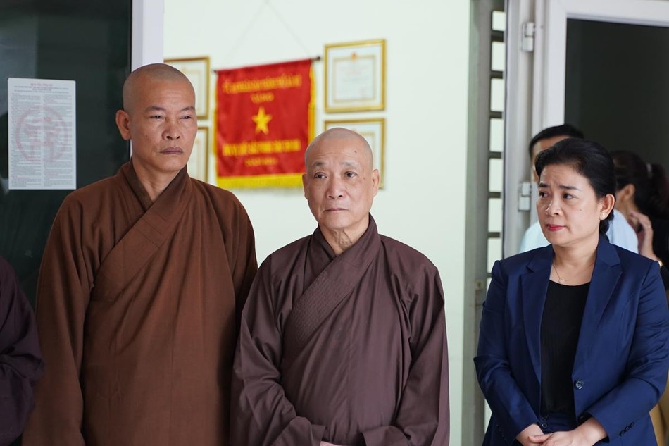 Đoàn do Hòa thượng Thích Bảo Nghiêm, Phó Chủ tịch Hội đồng Trị sự, Trưởng ban Trị sự GHPGVN TP.Hà Nội làm trưởng đoàn; Thượng tọa Thích Chiếu Tuệ, Ủy viên Hội đồng Trị sự, Phó Trưởng ban Thường trực Ban Hoằng pháp T.Ư, Phó ban Trị sự GHPGVN TP.Hà Nội; Thượng tọa Thích Đạo Phong, Ủy viên Hội đồng Trị sự, Phó ban kiêm Chánh Thư ký Ban Trị sự GHPGVN Thành phố; Ni sư Thích Tịnh Quán, Ủy viên Ban Hoằng pháp T.Ư tháp tùng; đại diện chính quyền Thành phố có bà Nguyễn Thị Kim Dung, Phó Chủ tịch Ủy ban UBMTTQVN TP.Hà Nội.