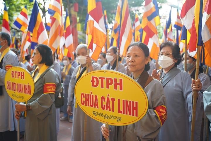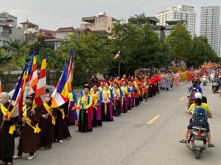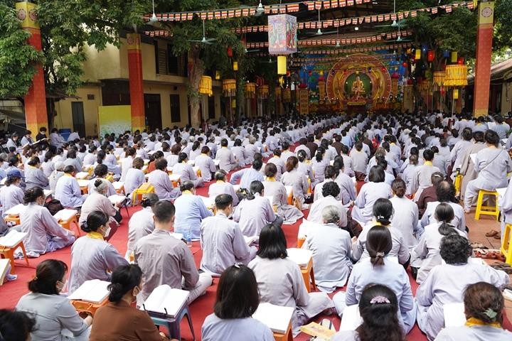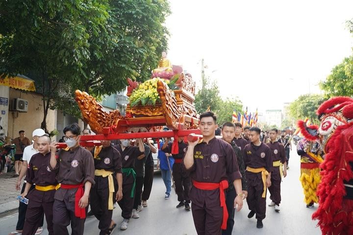 GNO - Tại chùa Bằng (Linh Tiên tự, phường Hoàng Liệt, quận Hoàng Mai, Hà Nội), chư Tăng trang nghiêm tổ chức khóa tu cho Phật tử, lễ rước Phật và Tắm Phật trong hoan hỷ Kính mừng Đại lễ Phật đản Phật lịch 2566.