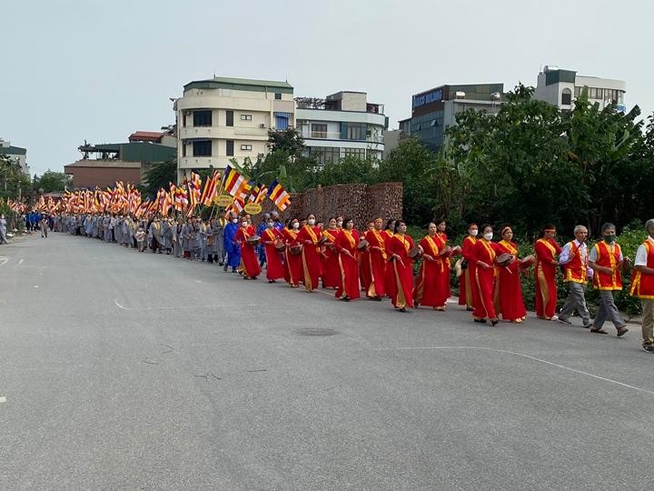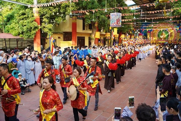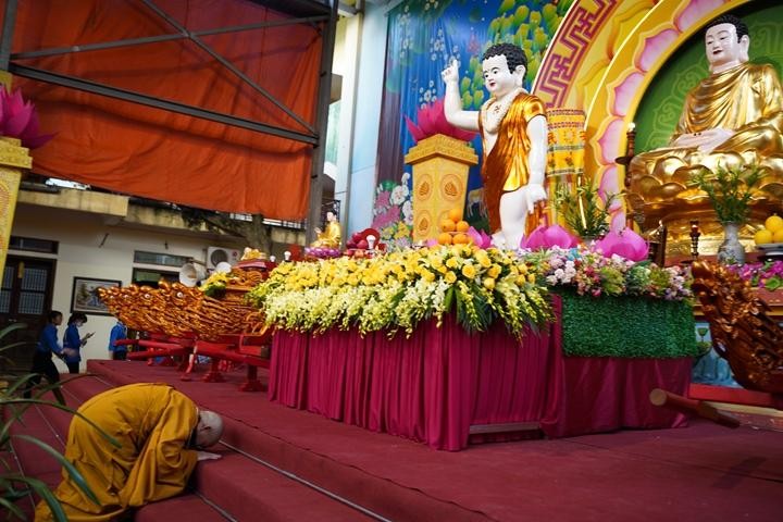 Trước đó, chư tôn đức và Phật tử đã rước lễ Vesak - Tam hợp, qua biểu tượng Đức Phật đản sinh, thành đạo và nhập diệt qua các đường phố, xóm phường… trong khi bà con thiết trí lễ cung đón hai bên đường, trong tinh thần thành kính và hoan hỷ kính mừng Phật đản.