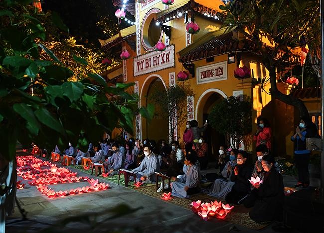 GNO - Buổi lễ đã diễn ra trang nghiêm, với thời tụng kinh, thỉnh chuông, thắp hoa đăng cầu nguyện đồng bào tử vong, các cán bộ, chiến sĩ hy sinh trong đại dịch Covid-19, vào tối nay 19-11, tại chùa Quán Sứ - Hà Nội, trụ sở của Trung ương GHPGVN.