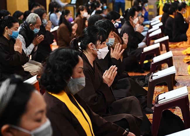 Tham dự cầu nguyện còn có các Đạo tràng Phật tử, Câu lạc bộ Thanh thiếu niên Phật tử chùa Quán Sứ.