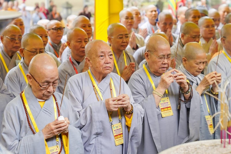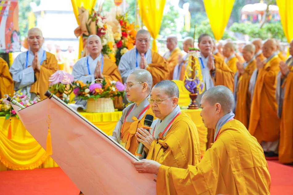 Trước hương án trang nghiêm, chư tôn đức Ni chứng minh cùng toàn thể hội chúng đã thành kính cử hành nghi thức niêm hương bạch Phật, yết Tổ.