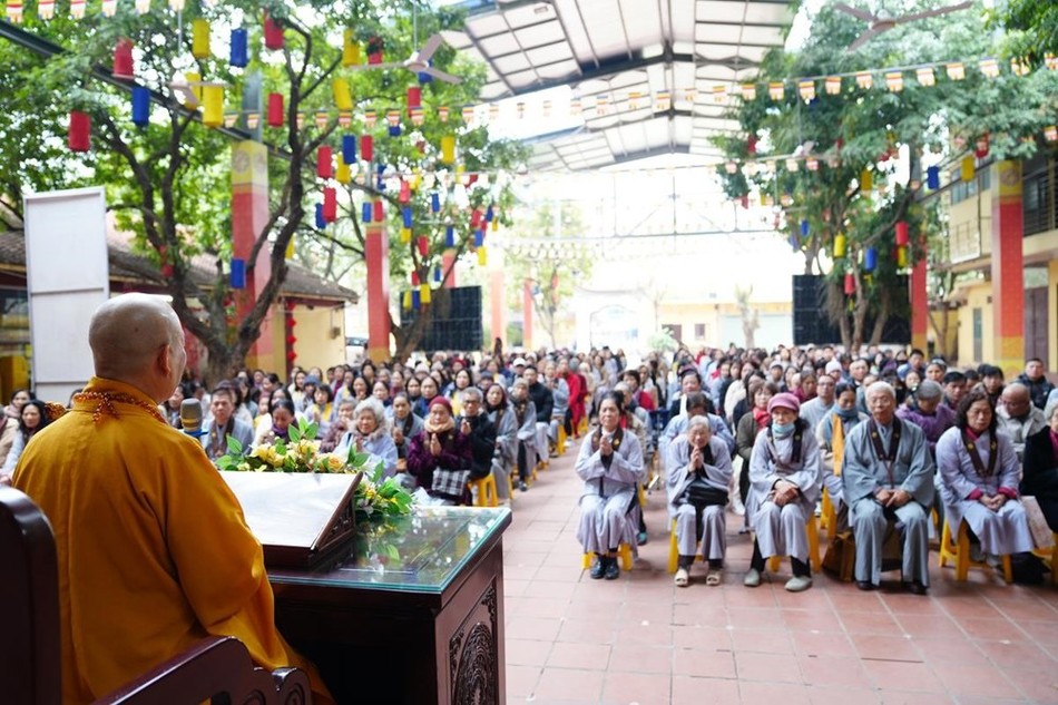 Tại đây, Hòa thượng đã ban thời pháp thoại đầu tiên của năm Ất Tỵ để nhắc nhở hàng Phật tử về truyền thống mà chư Tổ đã dạy mỗi người Phật tử đó là “về chùa, lễ Phật, vãn cảnh, nghe thầy giảng kinh” trong ngày đầu xuân mới.