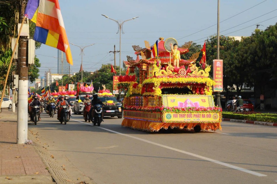 Trước đó, vào lúc 15 giờ 30 cùng ngày, nghi lễ cung rước Phật đản sinh từ chùa Cảm Sơn (TP.Hà Tĩnh) về chùa Phong Phạn được cử hành trang nghiêm và thanh tịnh, mở đầu chuỗi sự kiện tâm linh đầy ý nghĩa trong khuôn khổ Đại lễ.