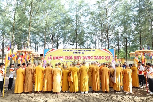 Trước đó, chư tôn đức đã làm lễ động thổ xây dựng Tăng xá tại Trung tâm Văn hóa Phật giáo tỉnh Hà Tĩnh.