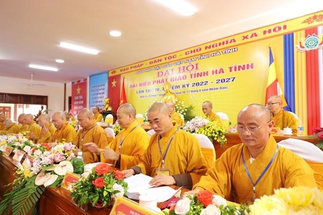Chủ tọa đại hội có Hòa thượng Thích Thiện Nhơn, Chủ tịch Hội đồng Trị sự GHPGVN; Hòa thượng Thích Thanh Nhiễu, Phó Chủ tịch Thường trực Hội đồng Trị sự; Hòa thượng Thích Bảo Nghiêm, Phó Chủ tịch Hội đồng Trị sự, Trưởng ban Trị sự GHPGVN tỉnh Hà Tĩnh, Trưởng ban Tổ chức Đại hội; Hòa thượng Thích Quảng Hà, Phó Chủ tịch Hội đồng Trị sự GHPGVN; Hòa thượng Thích Thanh Điện, Hòa thượng Thích Huệ Thông, đồng Phó Tổng Thư ký, cùng chư tôn đức Hội đồng Trị sự, 2 văn phòng Trung ương Giáo hội, các ban, viện Trung ương, Ban Thường trực Ban Trị sự tỉnh Hà Tĩnh.