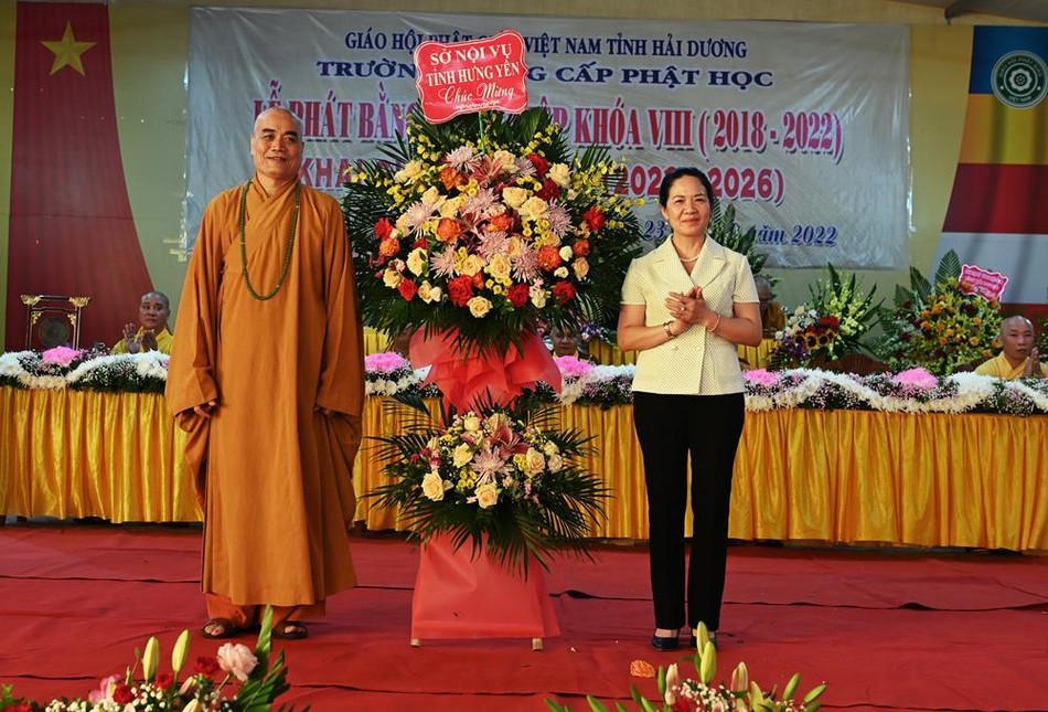 Phát biểu tại buổi lễ, ông Trịnh Ngọc Thành, Phó Giám đốc Sở Nội vụ tỉnh Hải Dương chúc mừng chư vị Tăng Ni sinh khóa VIII được nhận bằng tốt nghiệp. Ông đánh giá cao công tác giáo dục Tăng Ni tỉnh Hải Dương và bày tỏ hy vọng đây sẽ là lực lượng nòng cốt giúp cho Phật giáo tỉnh Hải Dương ngày thêm phát triển.