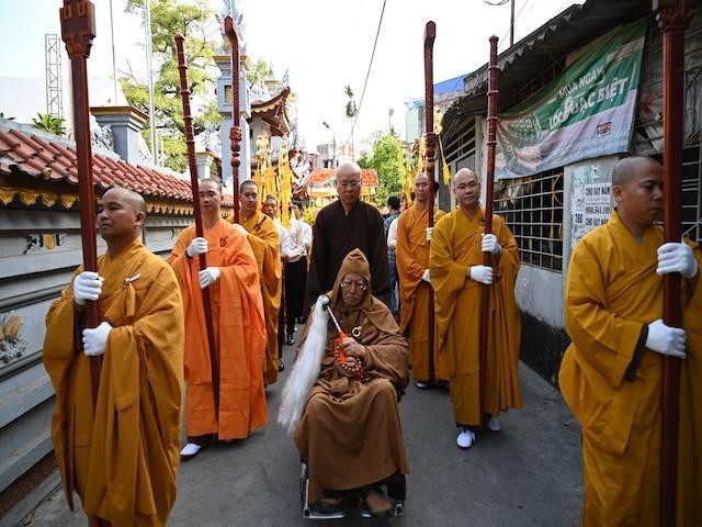 | Đoàn rước linh cốt cố Đại lão Hòa thượng về chùa Nam Hải |