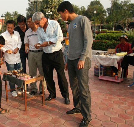 . Trong lúc U23 Việt Nam đi tham quan, rất nhiều khán giả Lào và một số người nước ngoài ra đề nghị xin chụp ảnh lưu niệm cùng ông Calisto, Thành Lương, Thanh Bình…