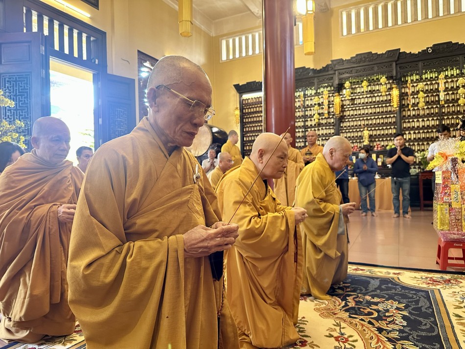 Cùng ngày, Hòa thượng Chủ tịch và phái đoàn cũng đã đến chùa Ấn Quang lễ Tổ, dâng hương tưởng niệm nhân húy nhật Đại lão Hòa thượng Thích Thiện Hòa.