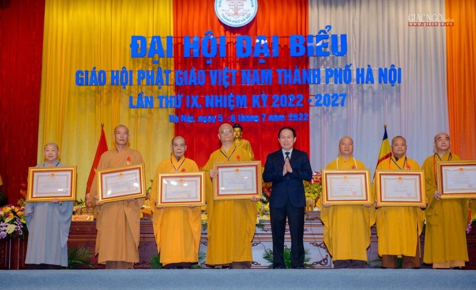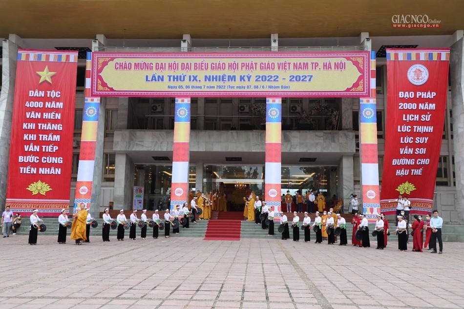 GNO - Sáng nay, 6-7, tại Cung Văn hóa Hữu nghị Việt - Xô, Thủ đô Hà Nội, Ban Thường trực Ban Trị sự GHPGVN TP.Hà Nội đã long trọng tổ chức Đại hội đại biểu Phật giáo Thủ đô lần thứ IX, nhiệm kỳ 2022-2027, với sự tham dự của 800 đại biểu chính thức và khách mời.