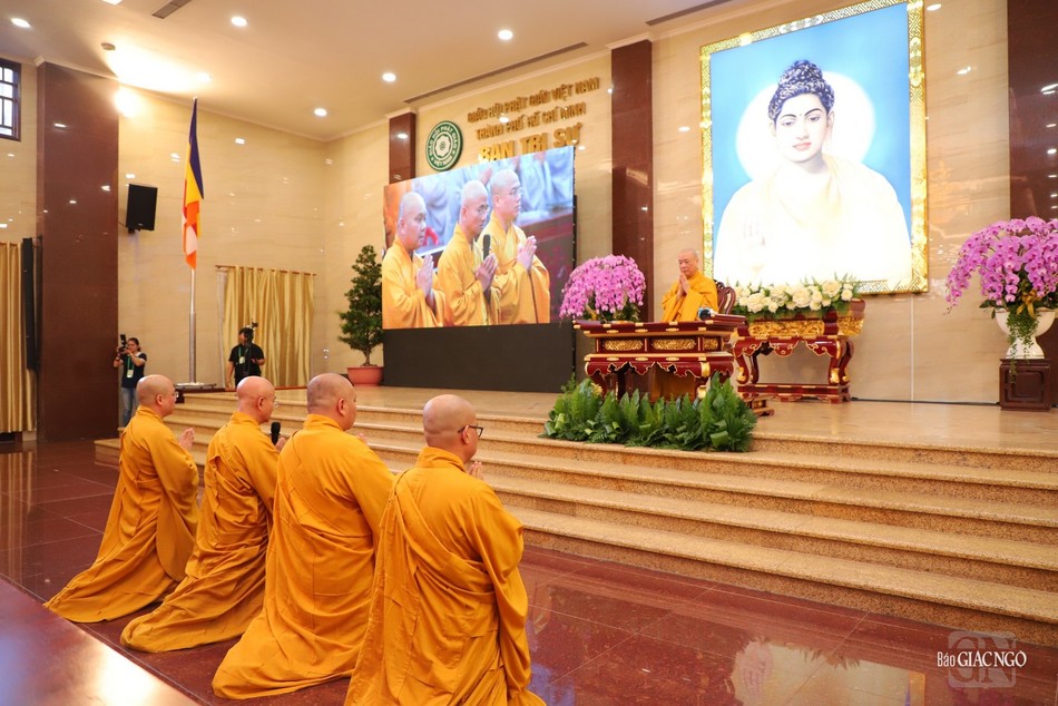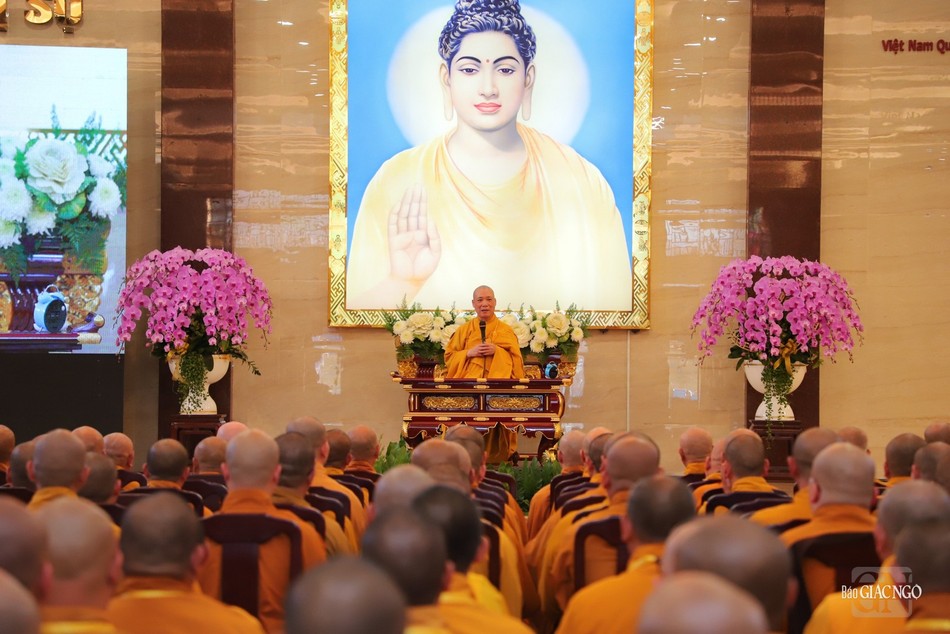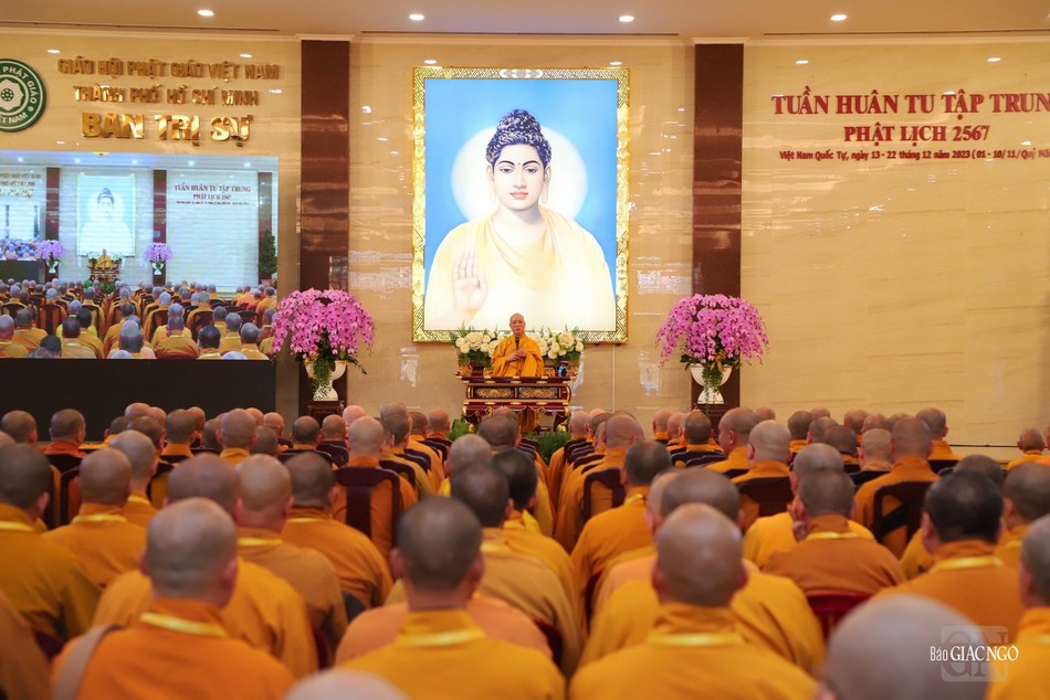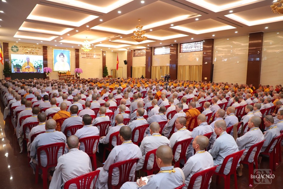 GNO - Sáng 21-12, chuyên đề cuối của Khóa huân tu và Bồi dưỡng trụ trì do Ban Trị sự GHPGVN TP.HCM tổ chức, Hòa thượng Thích Bảo Nghiêm, Phó Chủ tịch Hội đồng Trị sự, Trưởng ban Hoằng pháp T.Ư chia sẻ về nghiệp vụ hoằng pháp đến hơn 700 Tăng Ni.