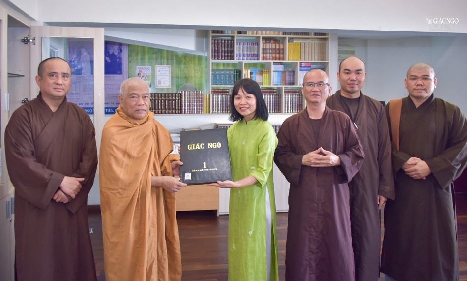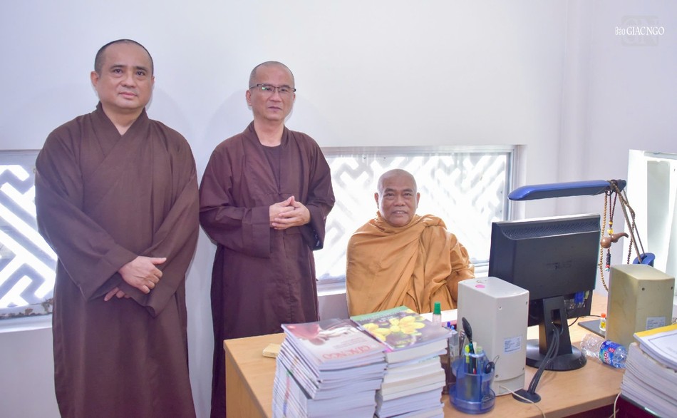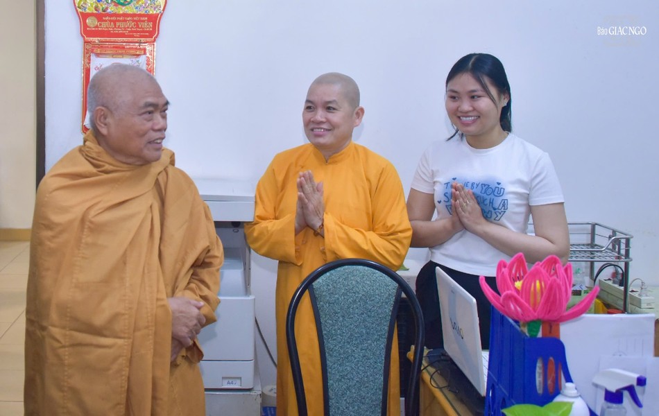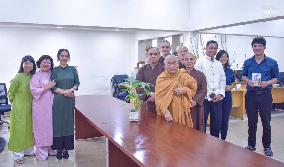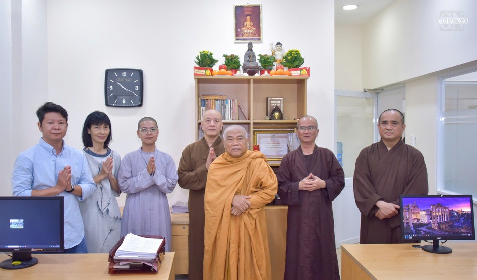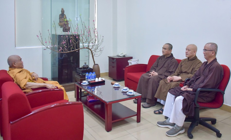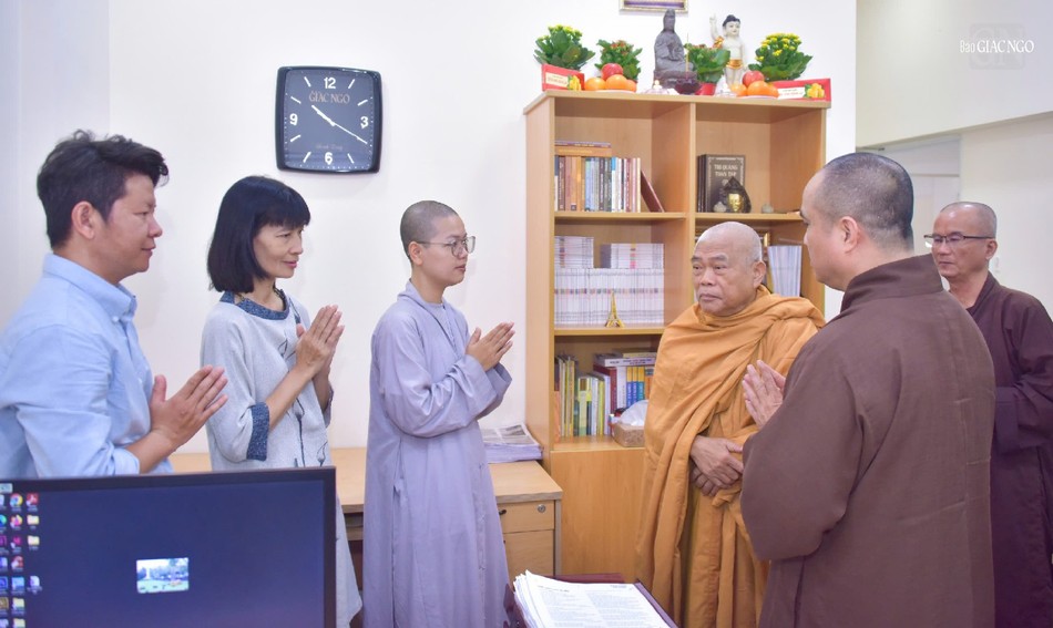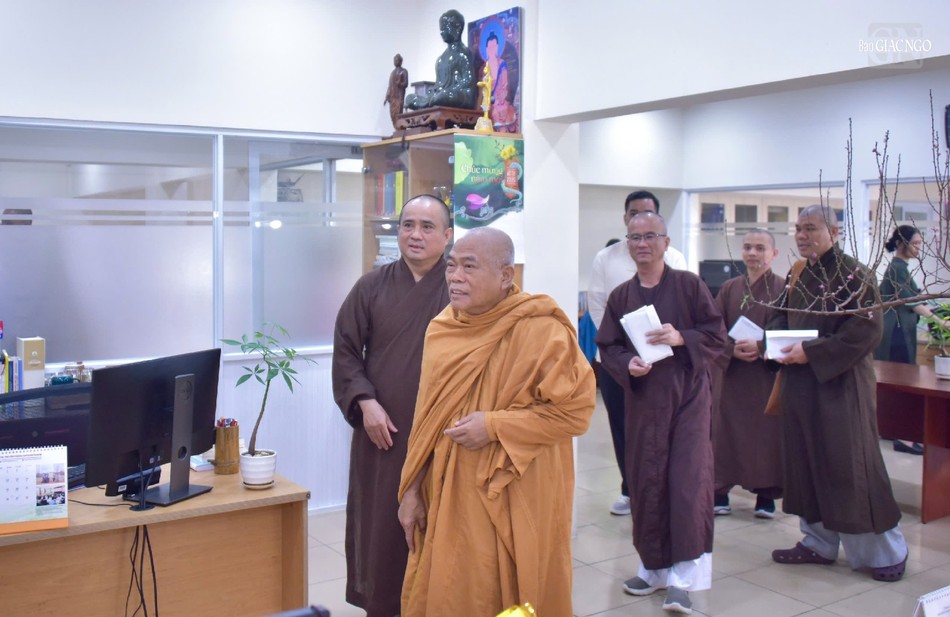 Trong ngày làm việc đầu năm, Hòa thượng Thích Giác Toàn và Thượng tọa Tổng Biên tập đã thăm các phòng ban, bộ phận làm việc tại trụ sở tòa soạn.