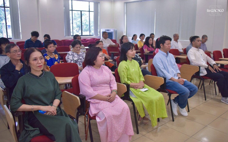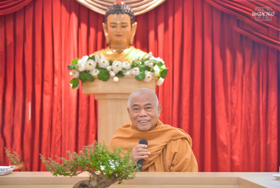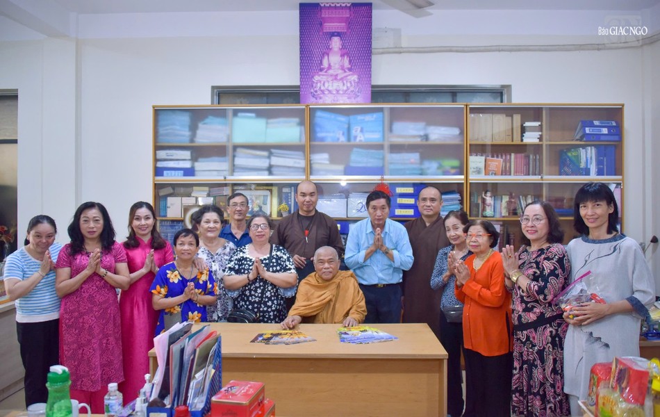 Tại hội trường, Thượng tọa Thích Chúc Phú, Phó Thư ký tòa soạn đại diện dâng lời chúc khánh tuế năm mới lên Hòa thượng Thích Giác Toàn, Phó Chủ tịch Hội đồng Trị sự, Viện trưởng Viện Nghiên cứu Phật học VN, nguyên Quyền Tổng Biên tập Báo Giác Ngộ.