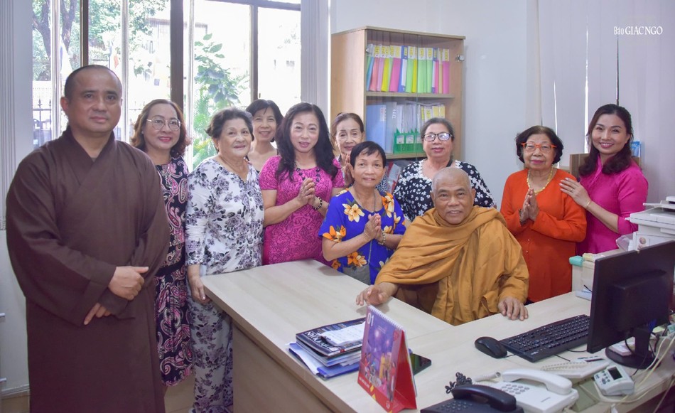 Thượng tọa Thích Chúc Phú thay mặt Ban Biên tập, phóng viên, biên tập viên, nhân viên chúc Tết đến Hòa thượng Thích Giác Toàn |